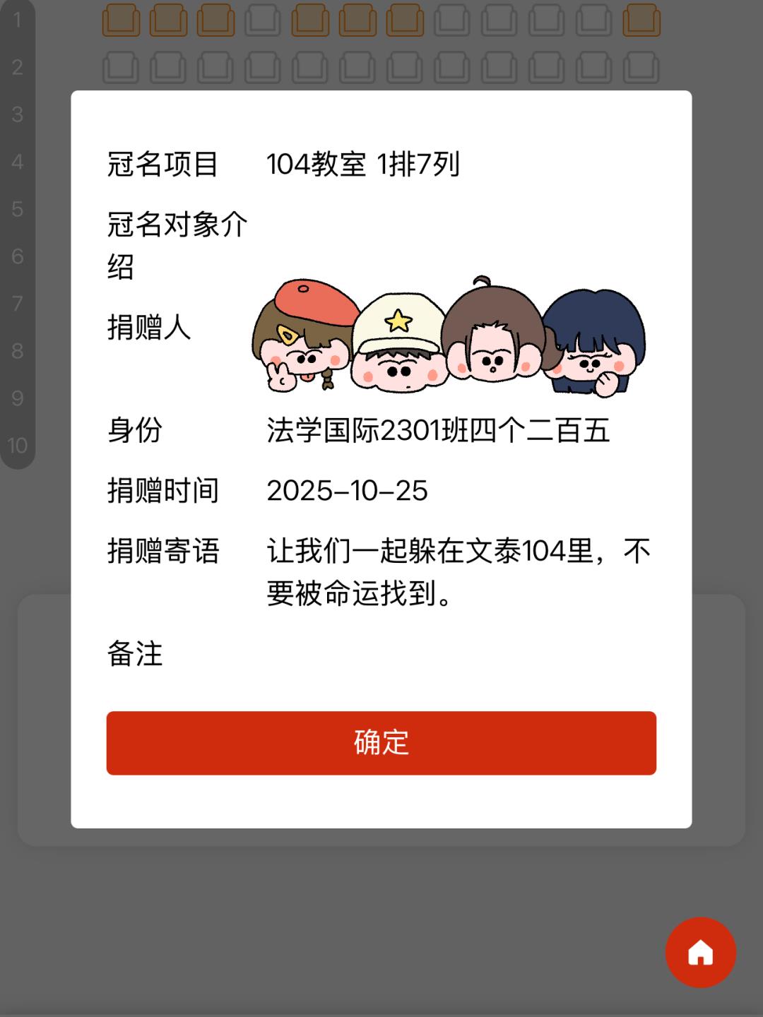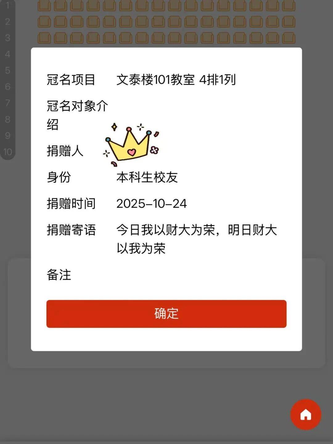据了解,校友单笔捐款达到1000元以上,可以在线浏览并选定心仪座位,在座位背面定制专属名牌,镌刻姓名、年级等个人信息。当前,开放冠名的文泰楼9间教室共1090个座位均已冠名,截至10月28日,捐赠总金额达到109万元。