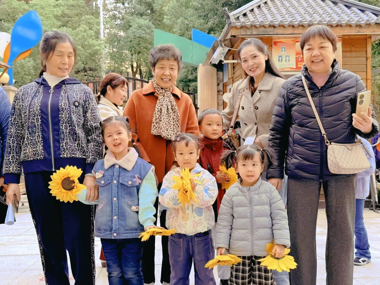 活动当天,孩子们手持葵花,热情迎接祖辈们的到来。在温馨的氛围中,幼儿们依次为爷爷奶奶、外公外婆奉上热茶,并用稚嫩而真诚的声音送上祝福:“爷爷奶奶,您辛苦了,祝您健康长寿!”老人们接过茶杯,轻抿一口,眼中满是慈爱与感动。孩子们还亲手剥开蜜橘,一瓣一瓣地喂到祖辈口中,甜蜜的滋味溢满心间。