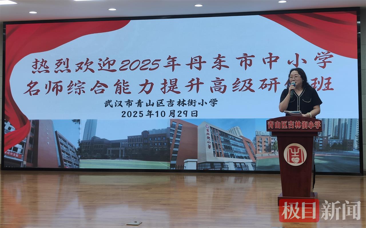 冬日暖阳映照校园,教育情谊温暖流淌。2025年10月29日下午,由武汉市教师发展与学生服务中心组织、青山区吉林街小学承办的“辽宁丹东中小学名师综合能力提升高级研修班”访学交流活动顺利举行。来自辽宁省丹东市的50余名教育专家与名师走进校园,开展了一场跨越地域的教育智慧深度对话。