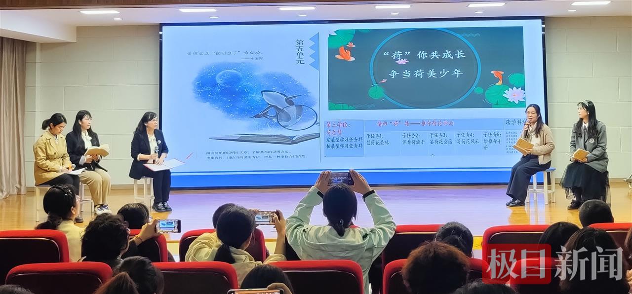 在沙龙研讨中,工作室成员明淑华、熊彦、崔典、刘思意围绕“荷美少年”主题课程展开深入交流,分享了“创荷花美味”“评养荷能手”等一系列跨学科任务设计,展现了课程整合与育人方式变革的实践智慧。