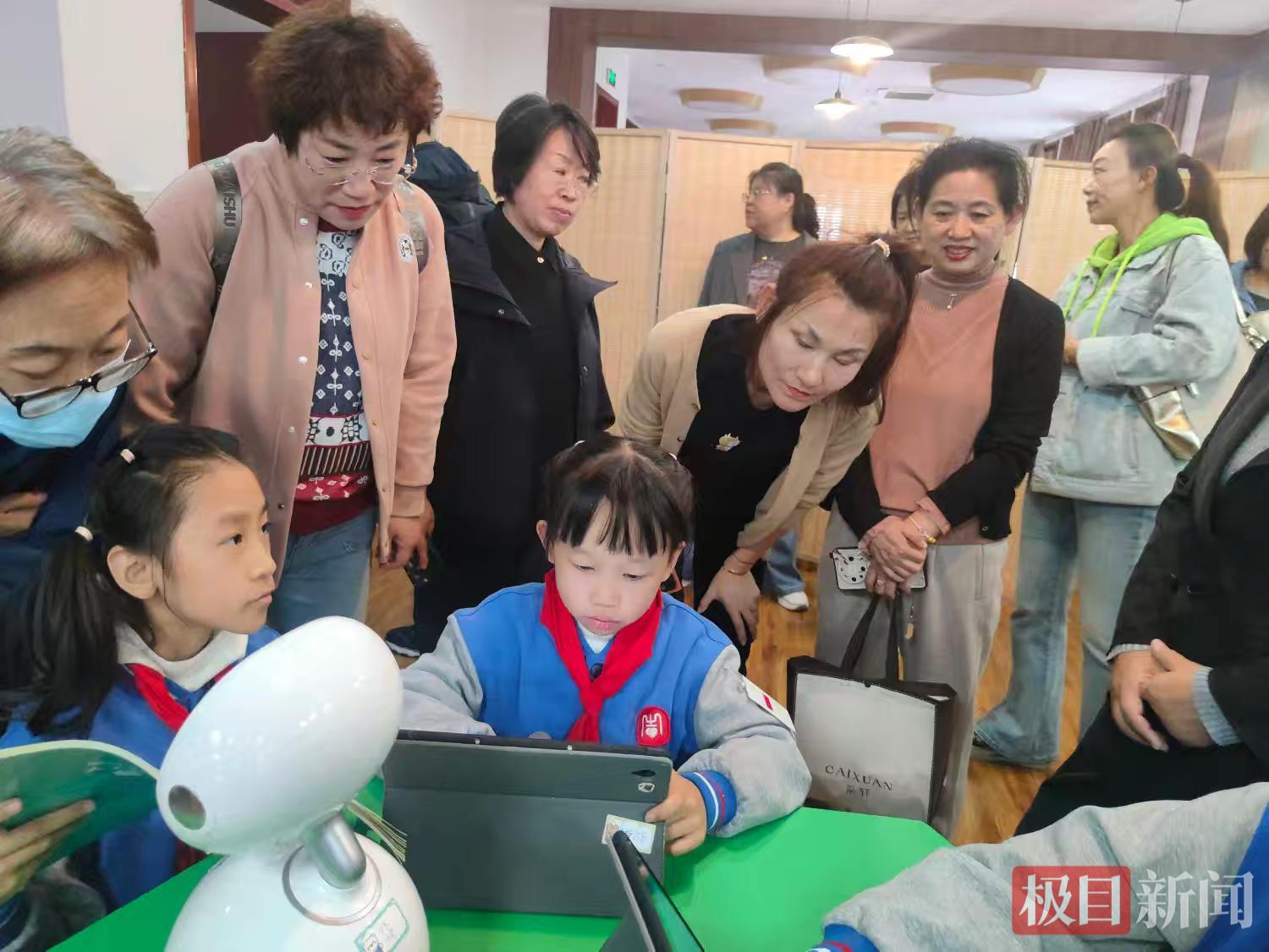 在吉林街小学学生讲解员的引导下,访学团开启了校园文化探索之旅。大厅内,“跨学科·拾秋”主题成果展融合科学与艺术,展现了学校在跨学科教学中的创新实践;操场上,航模、篮球、足球、武术等社团活动井然有序,展现出学生全面发展的蓬勃朝气。行进打击乐团奏响《钢铁洪流进行曲》,激昂旋律赢得访学教师们的阵阵掌声。电子书画室里,学生借助数字技术进行创作,传统书画与现代科技相映成趣;甲骨文文化墙前,访学教师积极参与“汉字盲盒”猜字互动游戏,感受中华文字的魅力。音乐教室内,小四弦社团的悠扬琴声令人沉醉;科学实验室、计算机教室、创客空间里,模型社团、机器人社团与编程社团的精彩展示,充分彰显学校“数智教育”的活力与成效。