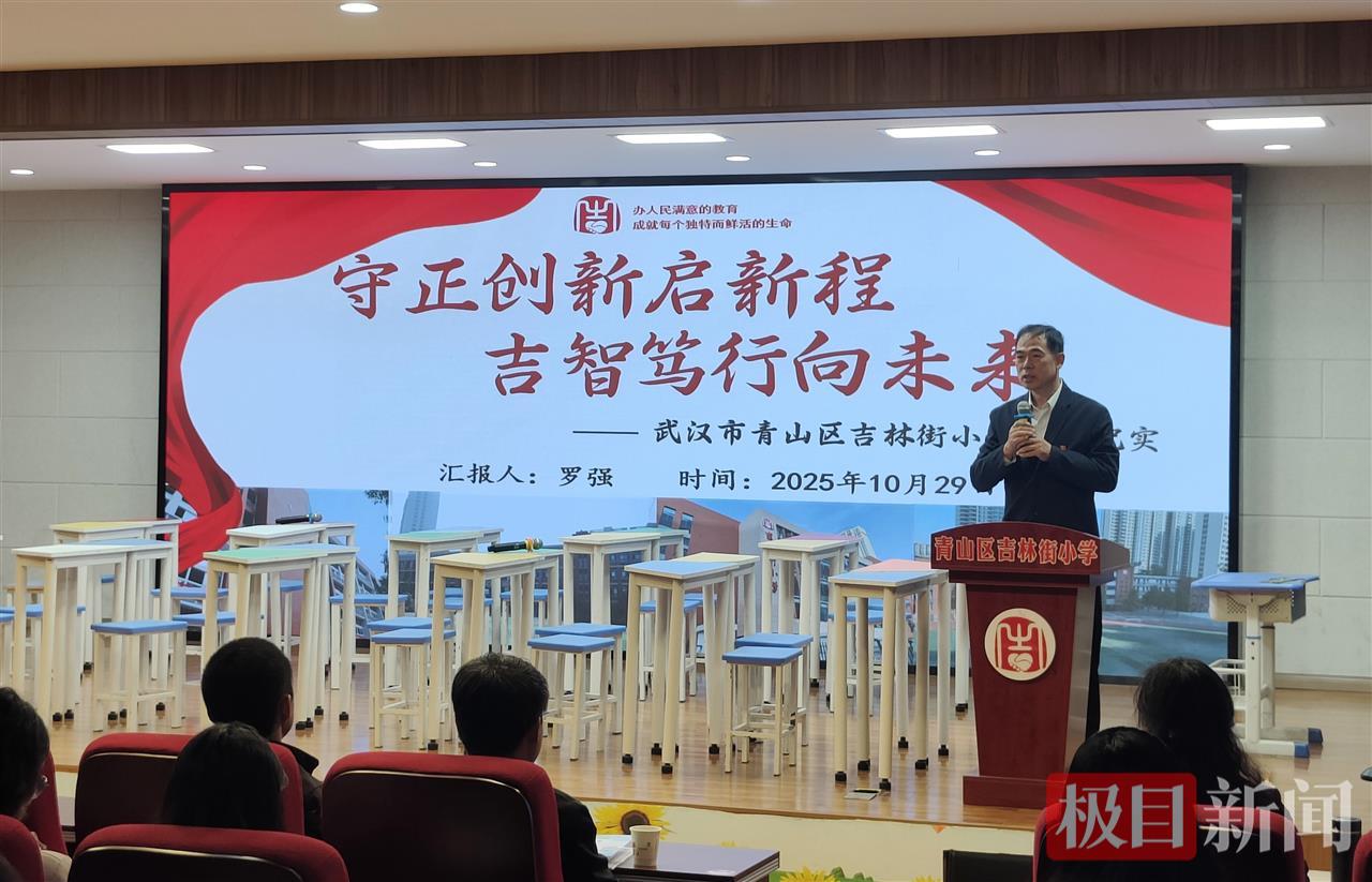 交流环节在学校报告厅举行。吉林街小学党总支书记罗强以《守正创新启新程,吉智笃行向未来》为题作专题报告。他回顾了青山区与辽宁深厚的历史渊源,系统阐释了学校“成就每个独特而鲜活的生命”的办学宗旨,并详细介绍了“吉先锋”党建品牌、“吉文化”育人体系以及“吉之智”数智教育的探索成果,引发了访学教师的广泛共鸣。
