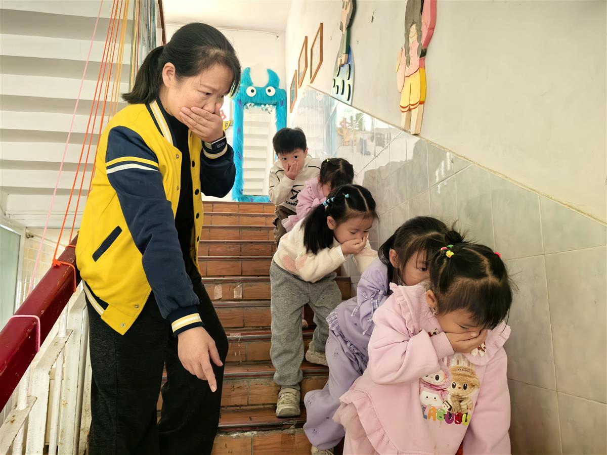 负责活动策划的安全员陈莉介绍,本次演练在专业性上实现三大突破:一是用消防烟饼模拟真实火场能见度,确保安全的同时还原场景;二是设置“障碍关卡”,如临时封锁主出口,考验师生的灵活应变能力;三是新增“情绪安抚”,重点观察教师对哭闹幼儿的应急疏导。“有个孩子演练时害怕地躲到桌子下,这提醒我们安全教育要更注重个体差异,精准引导。”