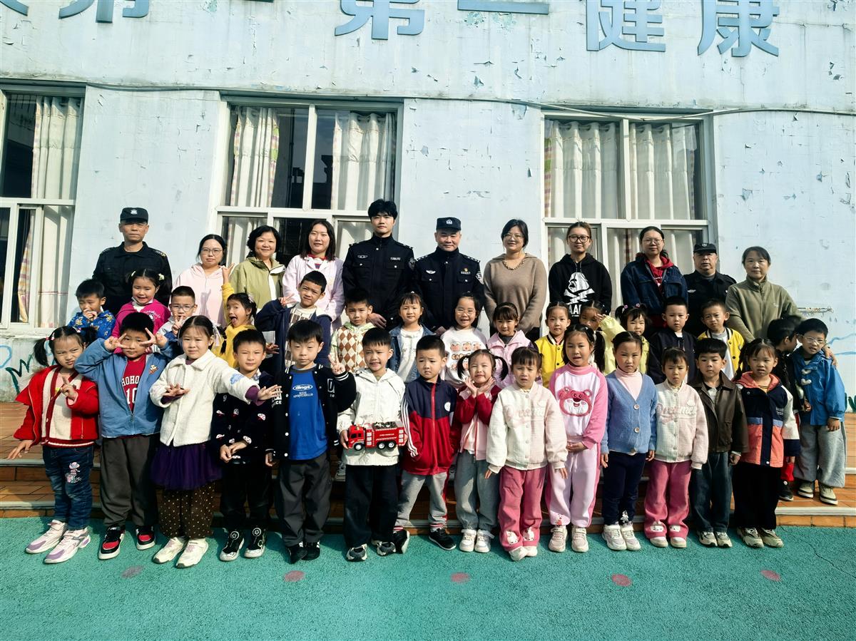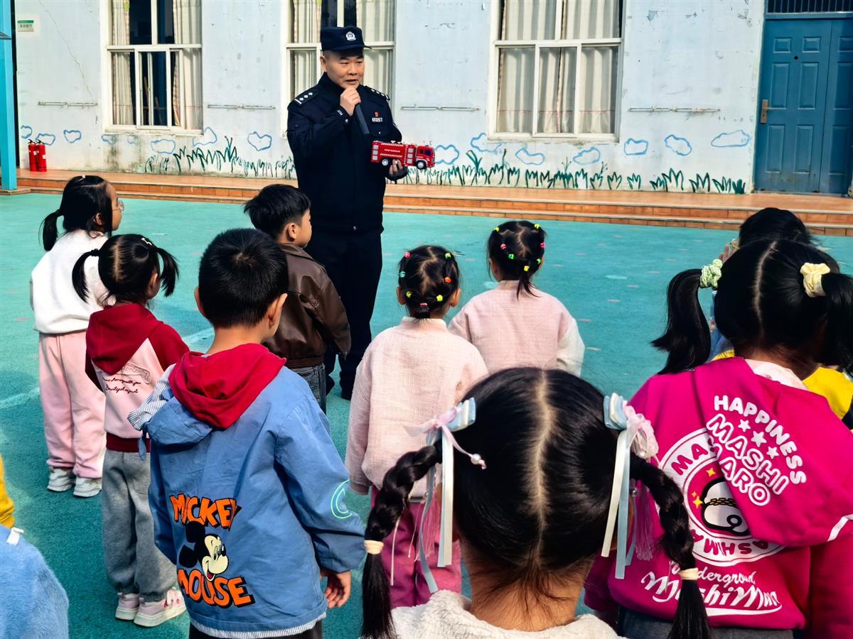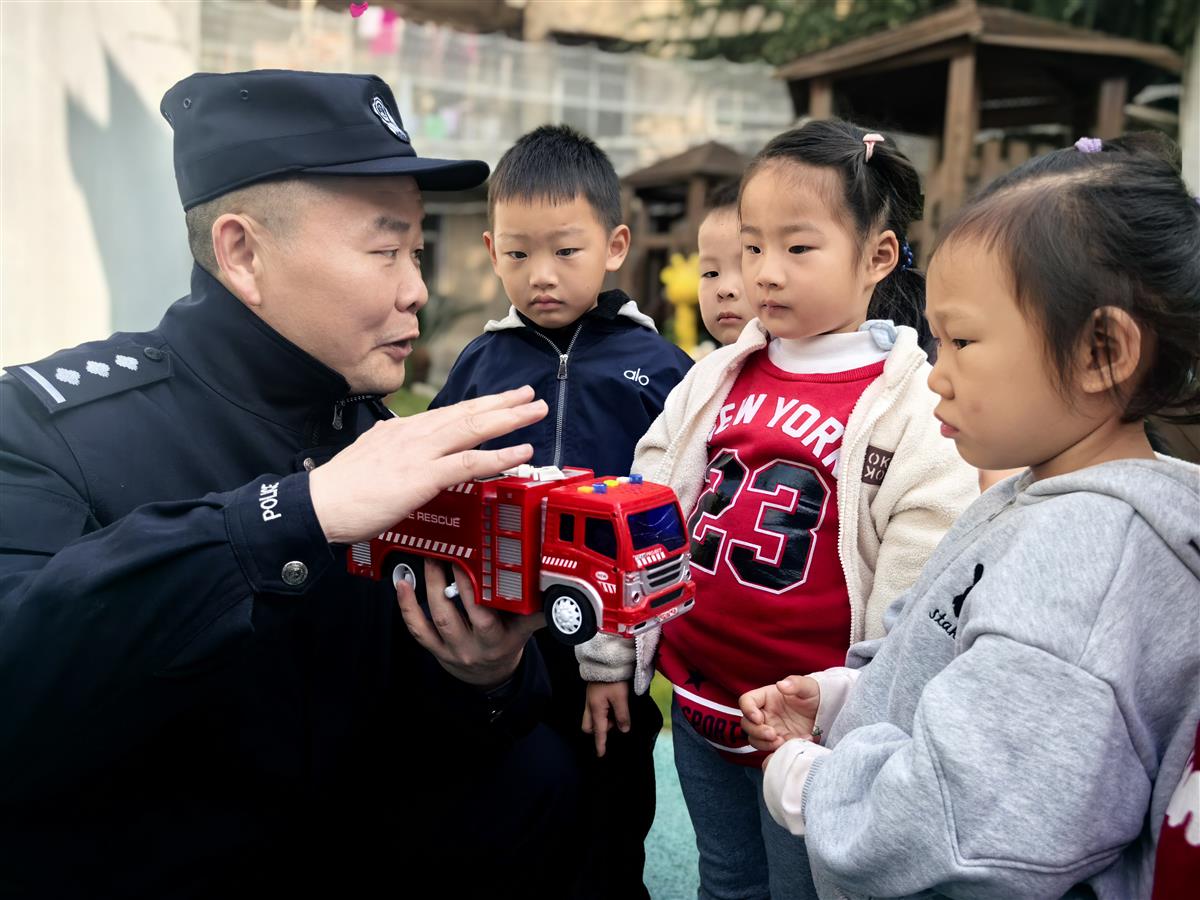 作为勘苑园的法治副校长,新沟桥派出所民警邵奇带着消防车模型登场,瞬间吸引了所有孩子的目光。“小朋友们,记住三个神奇数字——119!”他举起模型耐心讲解,“这可是打败‘火怪兽’的秘密武器,比奥特曼还厉害呢!”随后,邵奇通过演示防毒面罩佩戴、播放趣味动画,把逃生要点变成了孩子们易懂的口诀,让专业知识在趣味互动中深入人心。