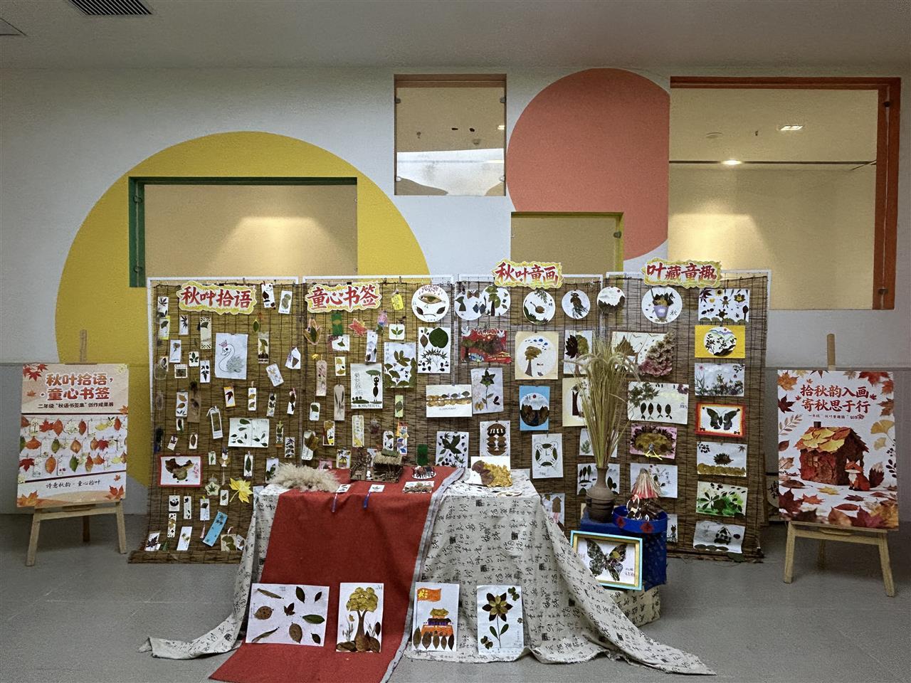 活动还巧妙融入数学测量、英语表达等学科任务。孩子们在测量秋叶、设计秋装采购清单、绘制双语秋景图等实践环节中,将课堂知识灵活运用于真实场景。校园连廊也变身成果展廊,学生们纷纷化身“小小讲解员”,自信讲述作品背后的创意与发现。