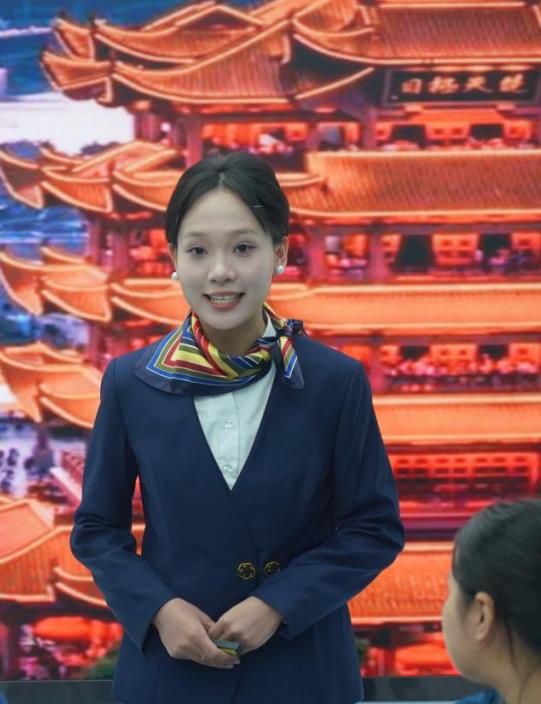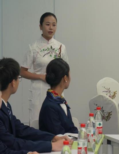 酒店专业学生孙慧娟化身“宴会设计师”,凭借精巧的桌艺布局、创意的餐具搭配,将专业知识与审美素养融入每一处细节,呈现出一场兼具实用性与艺术性的宴会场景设计。旅游专业学生高羽琦则以“金牌导游”的自信,用流畅的语言、饱满的热情讲解黄鹤楼景点,从历史背景到文化内涵,从游览路线到服务贴士,尽显扎实的专业功底与良好的沟通能力。