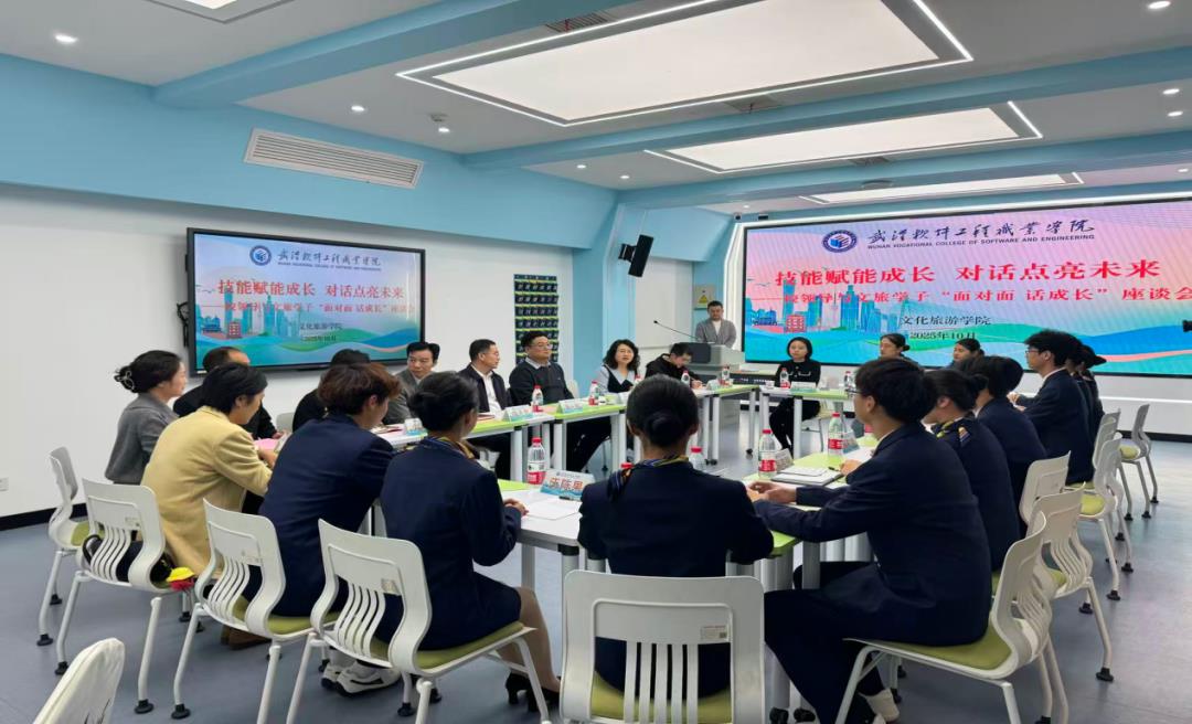10月29日下午,武汉软件工程职业学院党委书记蒋兴鹏和校企合作单位代表一起走进该校文化旅游学院2230“一站式”学生社区,与该学院学生代表聚焦技能提升,共话发展路径。不少企业代表看到学生们自信展示和大方谈吐,当场对学子喊话,希望学生们毕业后到自己的企业去。