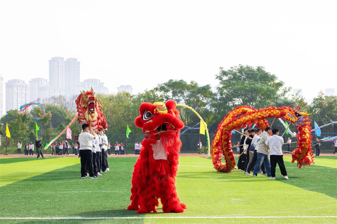 10月31日,在武汉工商学院第十九届田径运动会开幕式上,300余名学生共同演绎了一场气势恢宏的舞龙舞狮表演。彩龙翻腾起舞,雄狮矫健腾跃,整齐有力的动作配合铿锵的锣鼓节奏,展现出中华优秀传统文化的独特魅力,场面蔚为壮观。