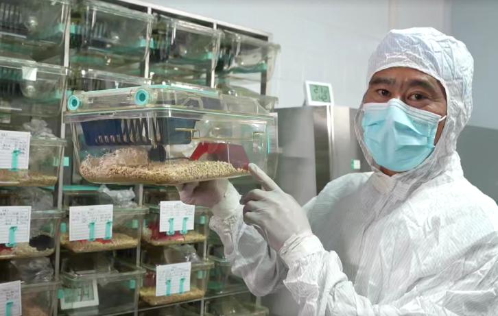 图为科研人员展示实验小鼠。(中国科学院空间应用工程与技术中心提供)