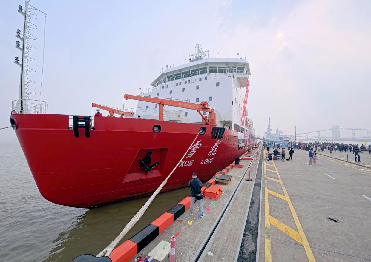 11月1日,“雪龙”号停靠在中国极地考察国内基地码头。新华社记者 方喆 摄