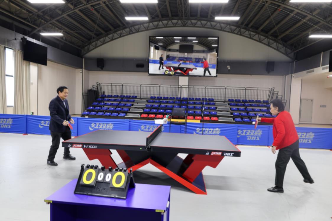 湖北省老年产业协会总顾问、“爱心奶奶”胡传金女士在我校国球馆参加乒乓球友谊赛