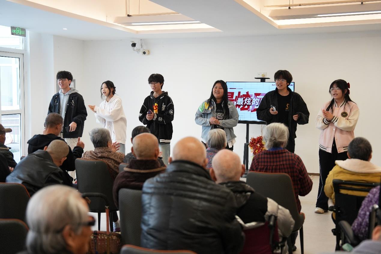 文艺表演环节将气氛推向了高潮。多才多艺的学生们献上了精心准备的节目。合唱《明天会更好》寄托美好祝愿,《最炫民族风》带动全场欢乐节奏,中国舞《洛神赋》则以优雅舞姿展现传统韵味。精彩演出赢得阵阵掌声,老人们脸上洋溢着幸福的笑容。表演间隙,贴心的志愿者们还为老人们分发了香蕉和牛奶等饮品,补充能量,关怀备至。