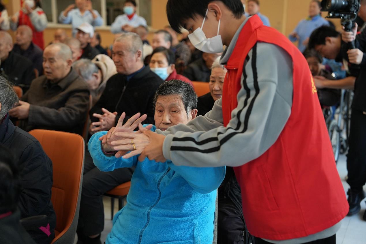 活动在温馨的氛围中展开。志愿者们首先带领老人们开展了一场别开生面的健康互动活动——《手指操八段锦》,耐心示范、细心指导,帮助老人们活动筋骨、促进健康。这套既简单易学又益处多多的保健操,不仅有助于促进血液循环、放松身心,更在轻松愉快的互动中拉近了志愿者与老人之间的距离。