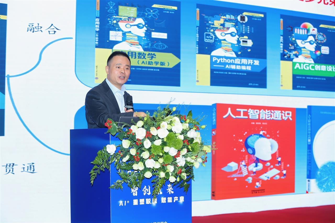 高等教育出版社智慧职教发展中心主任、党支部书记、国家职业教育智慧教育平台运维负责人周先海,则在大会上分享了AI赋能国家职教平台的实践成果。他介绍,当前国家职业教育智慧教育平台正依托AI技术优化资源推荐、升级在线教学功能,未来还将在“国家教育数字化战略行动2.0”背景下,深化AI在个性化学习、教学质量评估等领域的应用。“平台已实现‘千人千面’的资源推送,比如为机电专业学生精准匹配AI虚拟实训资源,为教师自动生成教学效果分析报告,这让国家级平台的服务能力从‘普惠化’向‘精准化’升级,是‘AI+职教2.0时代’的重要基础设施成果。”