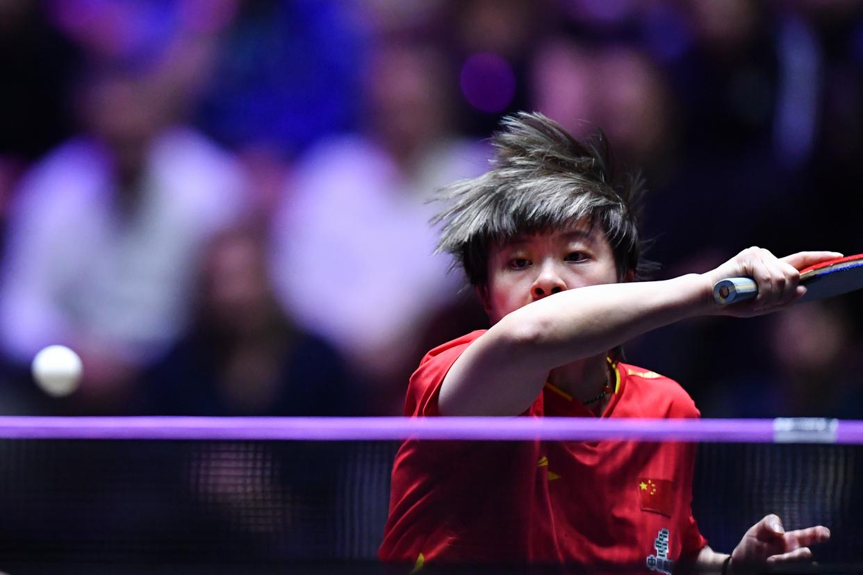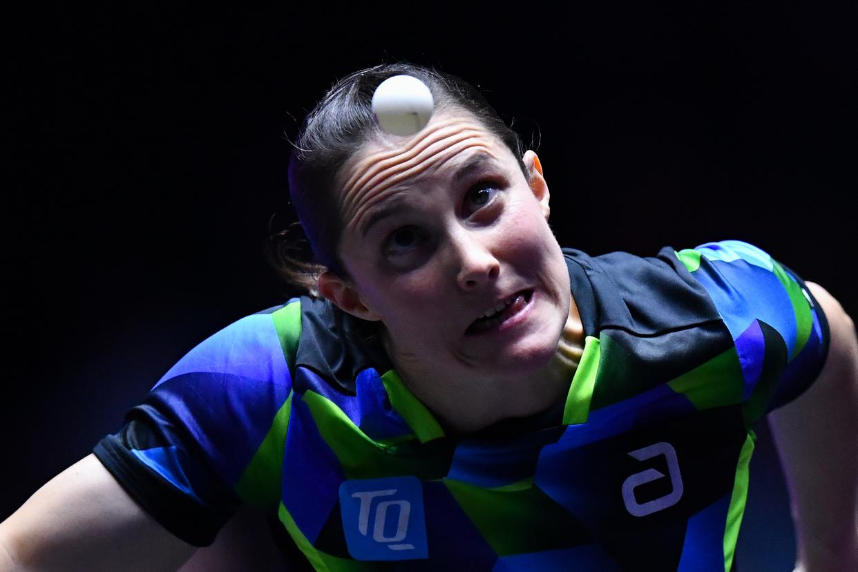 11月2日,德国选手沙宾·温特在比赛中回球。新华社记者 连漪 摄