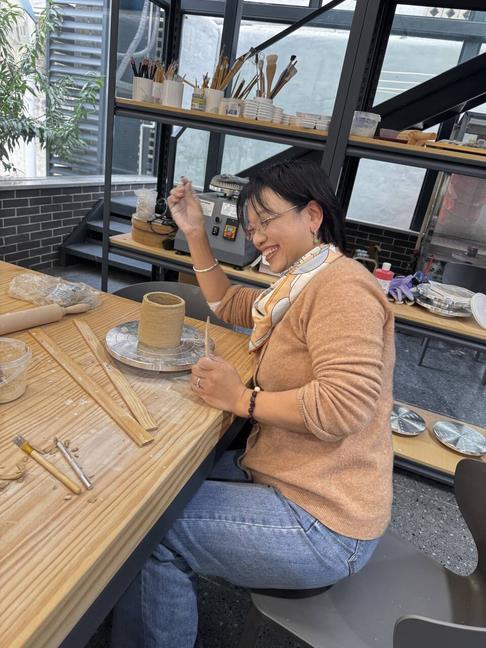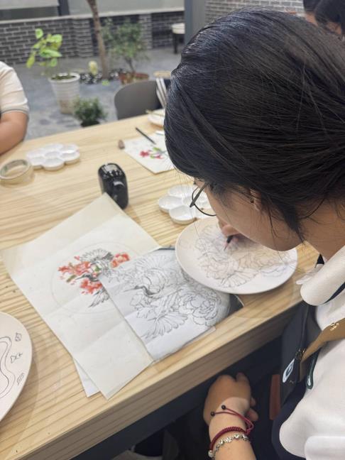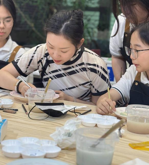 “陶园”也面向全校教职工开放。课余时间,老师们纷纷走进陶艺室,动手制作陶艺小件,体验拉坯与彩绘之趣,在陶土与色彩的互动中释放压力、调节情绪,营造出师生共融、共享、共创的艺术氛围。