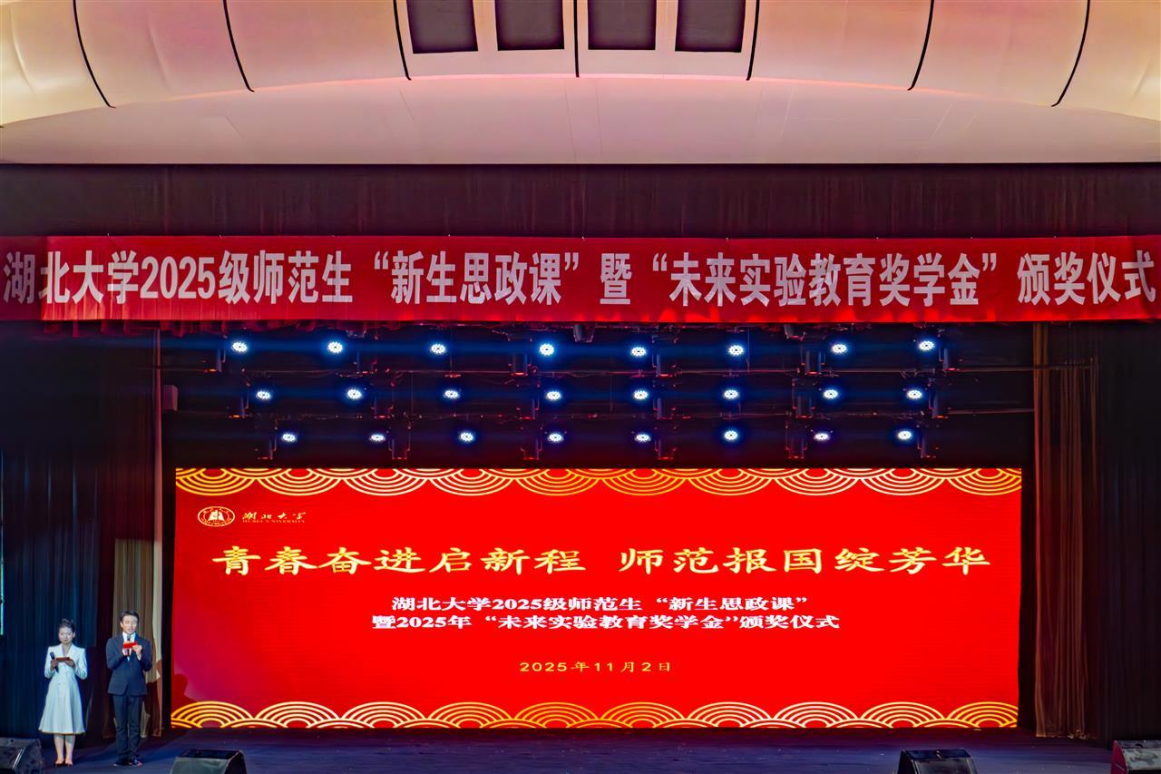 “原来教育不只是一份工作,更是用热爱点亮他人人生的使命。”11月2日下午,湖北大学2025级师范生“新生思政课”暨“未来实验教育奖学金”颁奖仪式启幕,全国最美教师、校领导、企业嘉宾与900余名师范新生齐聚一堂,共赴盛会。