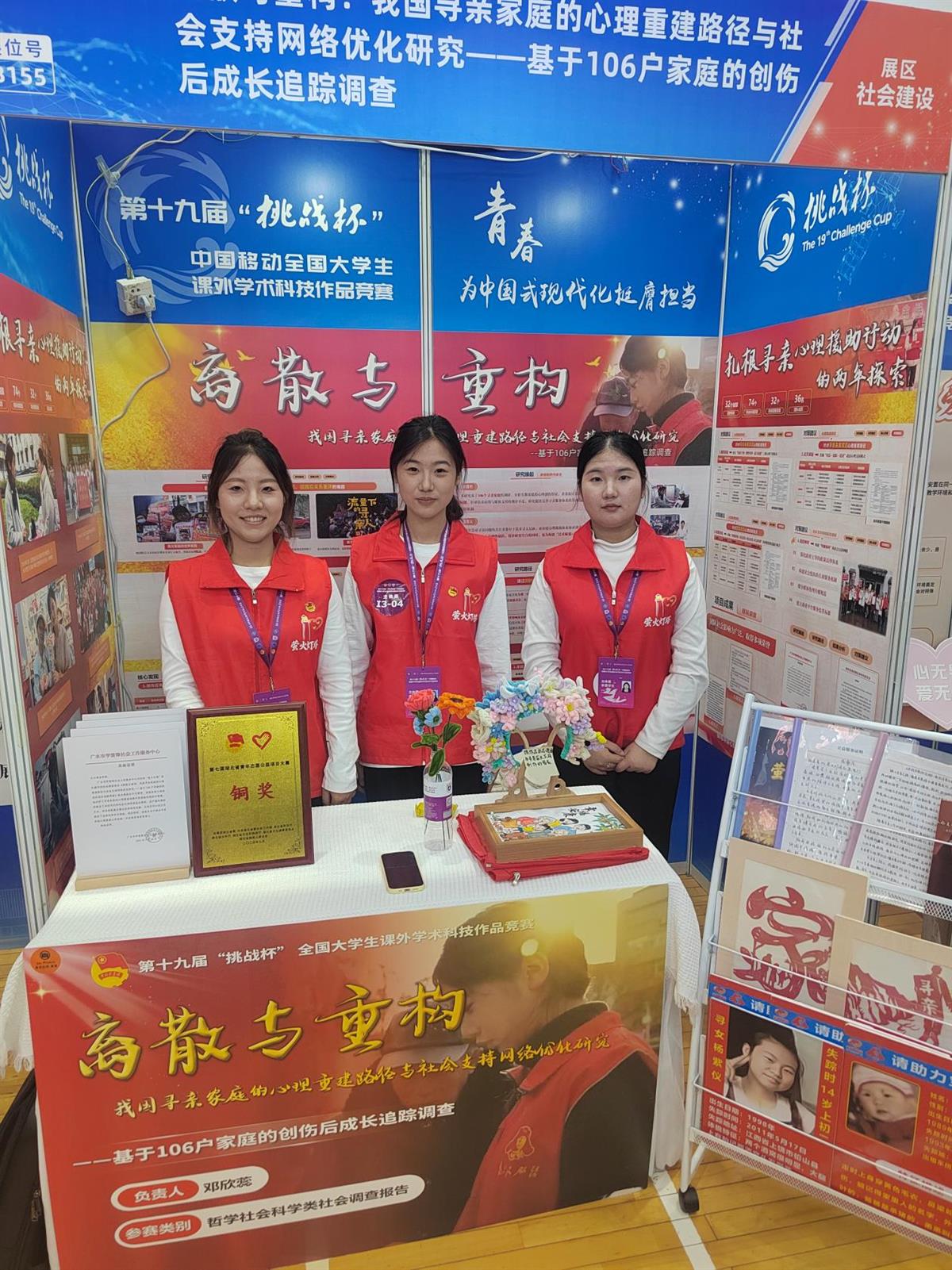 10月31日至11月3日,第十九届“挑战杯”全国大学生课外学术科技作品竞赛决赛在南京大学落下帷幕。长江职业学院选送的《离散与重构:我国寻亲家庭的心理重建路径与社会支持网络优化研究》作品,经校级遴选、省赛角逐、国赛终审,斩获主体赛全国特等奖。