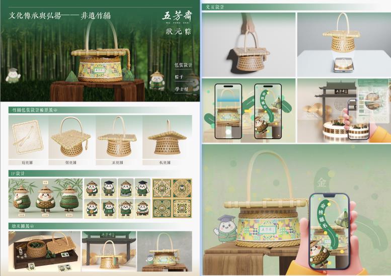 令人振奋的是,这些创新成果已在国际舞台大放异彩。以《竹编和韵》为代表的课程成果,将传统竹编纹样与现代包装设计巧妙结合,以“经纬交织”的视觉语言重构粽子包装结构,既保留竹编的温润质感,又通过模块化设计实现便捷拆装与环保功能,最终在2025年中国好创意大赛中斩获国家一等奖。