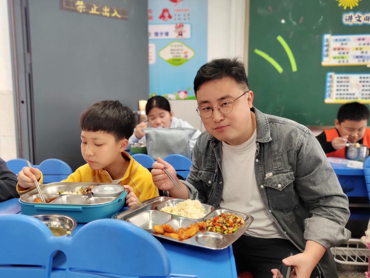 503班学生陈睿哲的爸爸陈立作为今日的陪餐代表之一,看着孩子们享用美食正酣,也是笑逐颜开:“我家孩子平时是比较挑食的,但是学校的菜还是蛮合他口味的,经常会回家告诉我学校今天吃了虾,吃了排骨之类,孩子吃得好,我们做家长的也放心。”