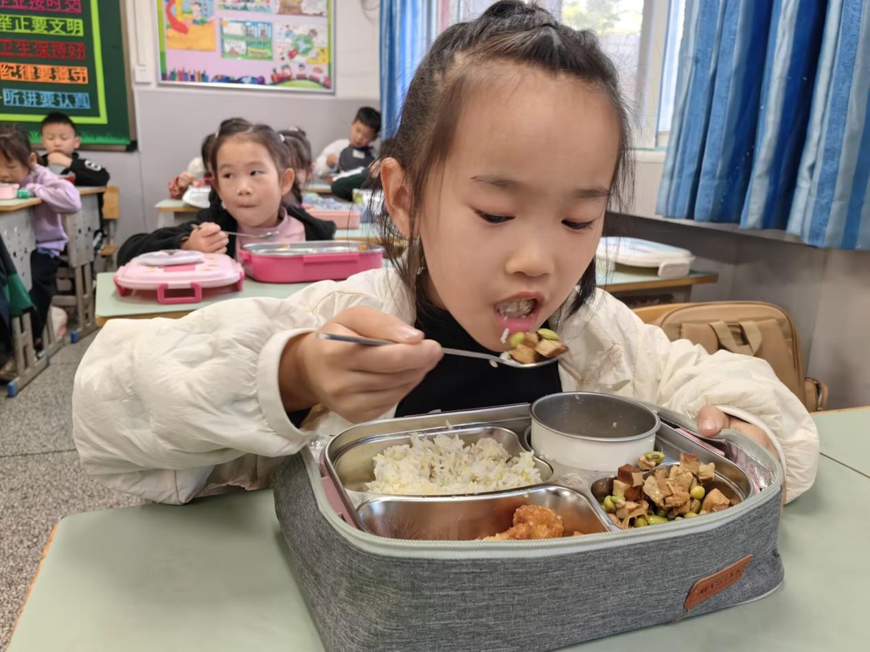 “给孩子们做饭菜,口味要适合小学生,清淡营养,不能放太多调料。还要考虑孩子们咬得动、好消化。看到孩子们吃得干干净净,笑着说‘伯伯,今天菜真好吃’时,我们既开心,又特别有成就感。”学校食堂班长翟金香说。