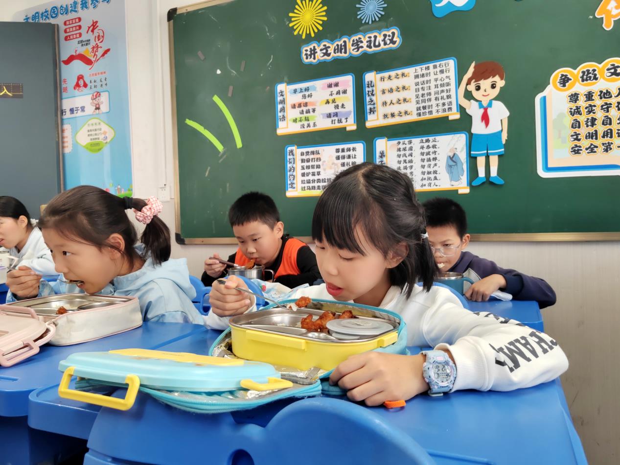 中午12:10,陪餐的家长们走进教室,和老师、孩子一起用餐,品尝可口的饭菜。“今天中午吃的是香酥鸡柳、豆米干子炒肉丁、冬瓜汆丸汤,像香酥鸡柳、豆米干子炒肉丁,是我最爱吃的菜,今天还吃的是杂粮饭,非常有营养!”正在就餐的503班赵茜伊同学这番话语,道出了学生们的共同心声。从现场孩子们吃得颗粒不剩的餐盘可以看出,大家对这顿午餐非常满意。
