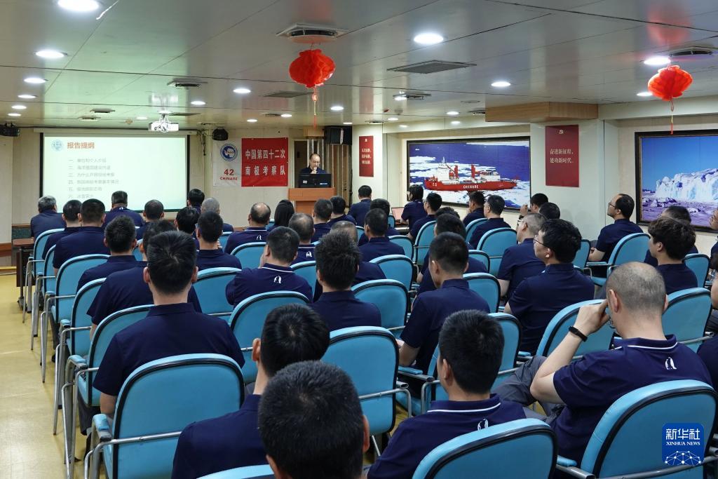 “队员们克服大风浪带来的晕船等情况,展现出良好的精神风貌。”南极大学教务主任程皝说,航渡远赴南极,时间长、任务重,开办南极大学是帮助队员们合理利用时间、增进队内团结的重要举措。