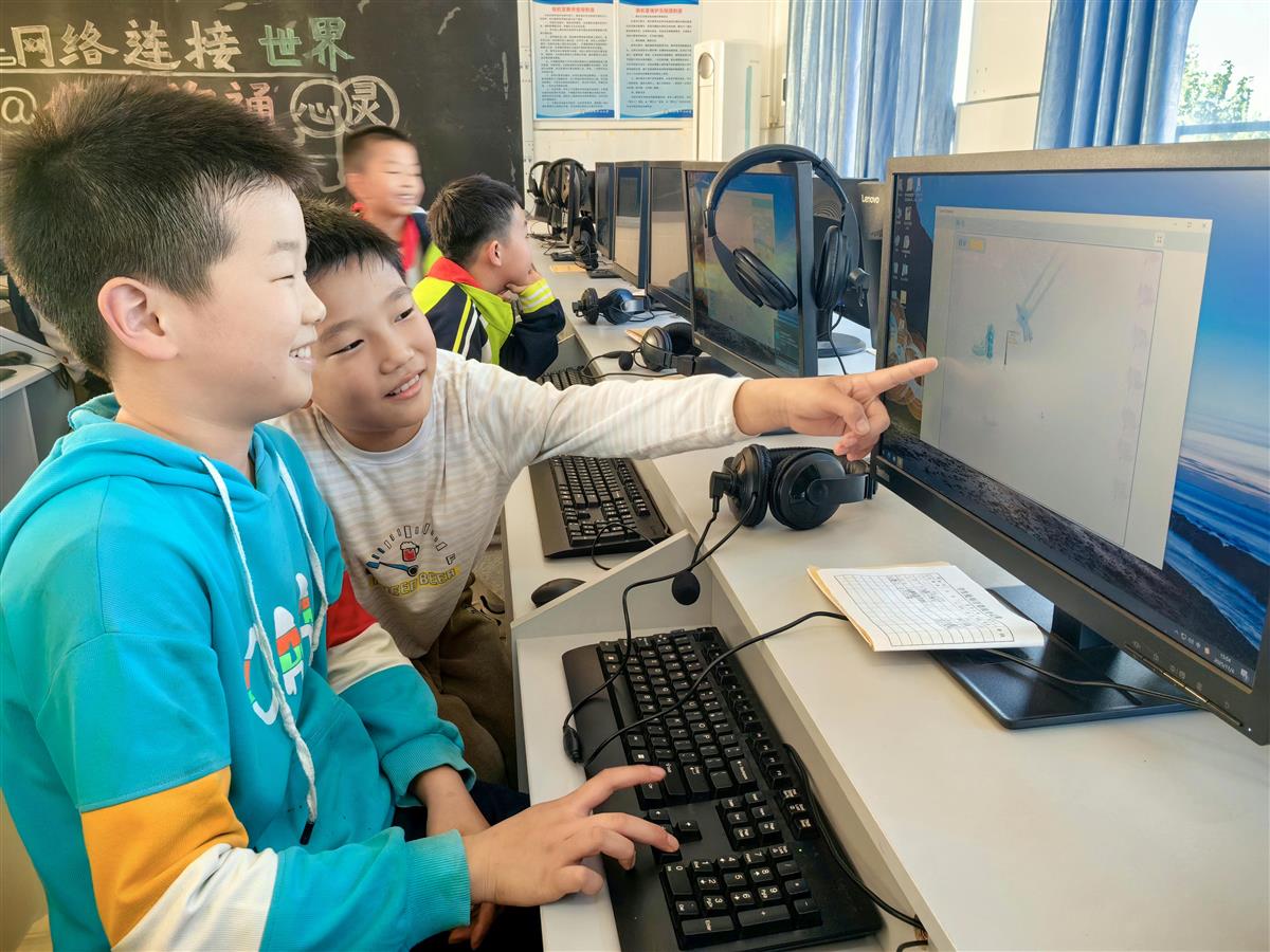 11月5日下午,课后服务时间,双柳街中心小学的电教室里键盘声此起彼伏。编程兴趣班的孩子们正投入一场紧张而有序的“人机对话”。屏幕上,一行行代码如跃动的音符般不断闪现。偶有红色报错提示跳出,却无人气馁——有的托腮凝思,有的围聚讨论,协力排查问题。当一个“Bug”被成功解决,孩子们的脸上绽放出灿烂的笑容。