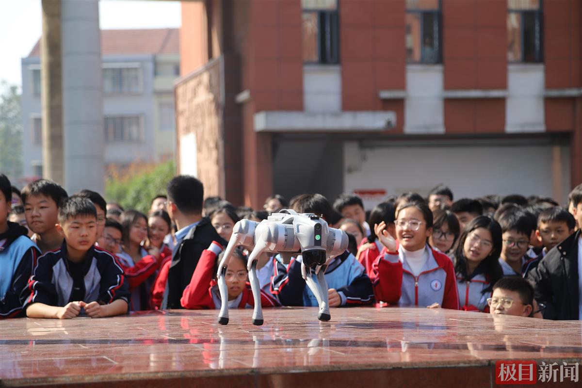 上午,总校教师在厚德广场展示了机器狗等科技设备,迅速点燃了学生们的热情。