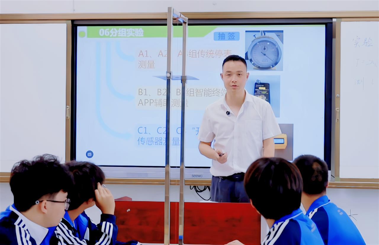 “利用单摆测量重力加速度”是高中物理教学的经典实验,长期以来面临操作误差大、数据处理复杂、原理理解困难等教学痛点。针对这些问题,汉口北高中物理团队开展系统研究,构建出一套创新教学方案:将传统手动测量升级为“传感器+数据平台”数字化模式,借助位移传感器实时采集数据,依托专业软件自动生成振动图像并精准提取周期参数,显著降低人为误差。同时,课程设计了“提出问题—猜想假设—数字化验证—误差分析—方案改进”的完整探究流程,引导学生自主调控变量、对比实验结果,有效培养科学探究能力与批判性思维,高度契合赛事评价导向。