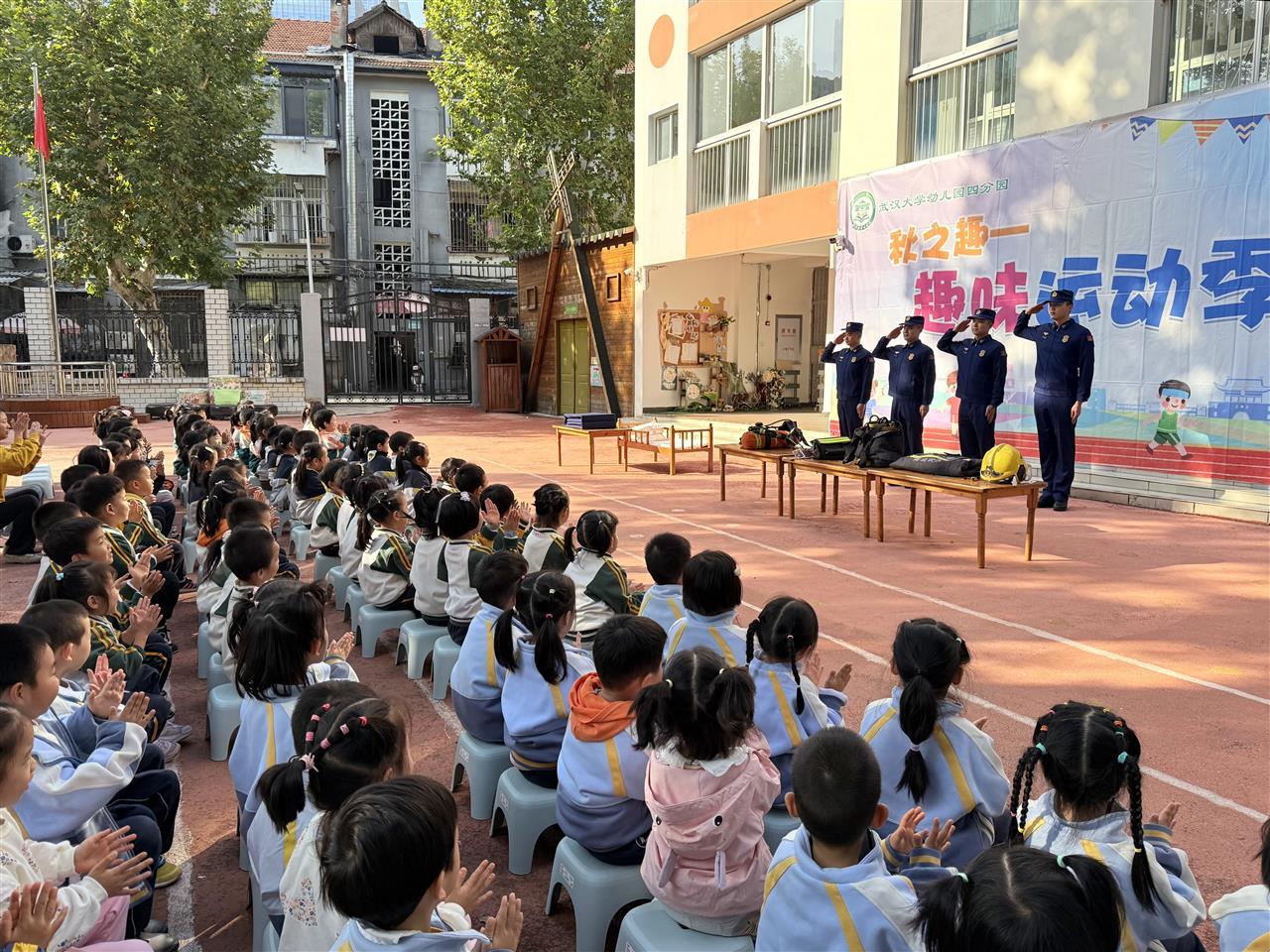 此次活动是武汉大学幼儿园四分园深化“社区资源进校园”机制的一次实践。通过引入水果湖消防救援站的优质资源,幼儿园不仅丰富了安全教育的形式与内容,也进一步促进了“学校—家庭—社区”协同育人环境的构建,为幼儿安全、健康成长奠定坚实基础。