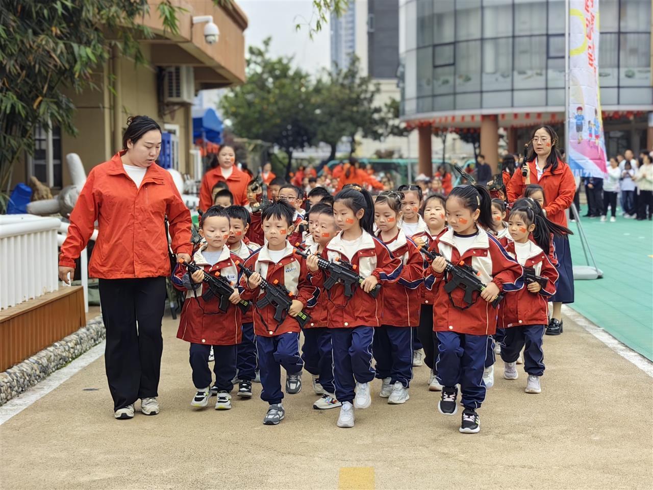 近日,武汉市蔡甸区直属幼儿园外操场彩旗招展、军歌激昂,为期两天的“荷娃铸军梦 亲子共强国”秋季军事亲子运动会顺利落幕。该园大、中、小班幼儿化身“荷娃小兵”,与家长组成“战友”小队并肩参与活动,在趣味军事主题项目中沉浸式接触国防教育,于协作中感受亲子温情,让强军强国的种子在童年时光里悄然扎根。