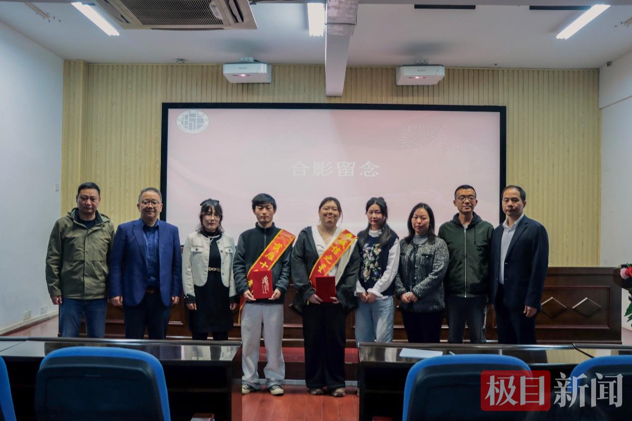 学工处处长赵斌宣读学校表彰决定,授予挺身救助受伤骑手的2024级工商管理专业张奥文同学“落雁十佳青年”荣誉称号及奖金1000元;授予拾金不昧的2024级会计学专业程汝滢同学“落雁诚信之星”荣誉称号及奖金500元。