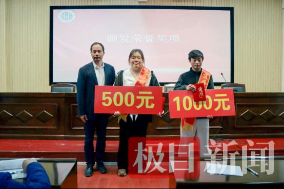 颁奖环节,团委书记王薇薇为两位同学颁发荣誉绶带,经济与管理学部党总支副书记毛军杰为他们颁发奖金,全场以热烈的掌声向两位同学表示祝贺。