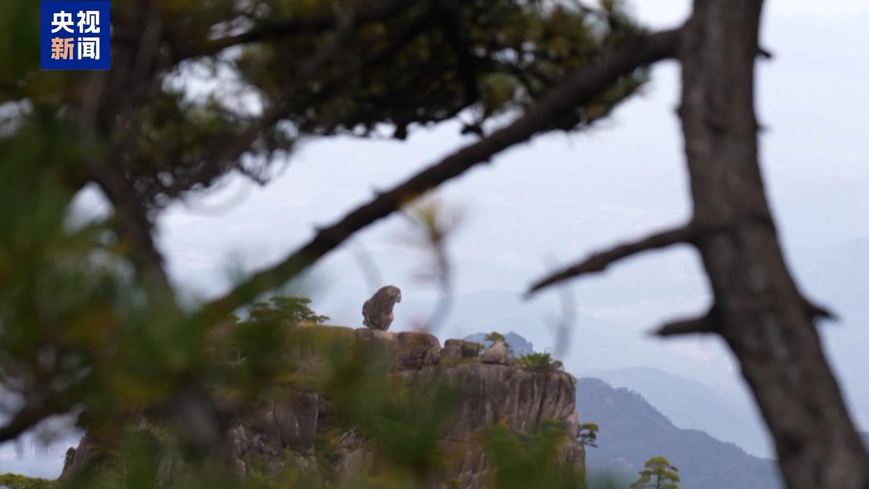 课本中的图片“猴子观海石”则蹲在山顶上,记者向上行走了一个多小时才抵达。远远望去,这块石头像一只猴子蹲坐在悬崖边,好像在认真欣赏着远处的云海,模样特别逼真。不少家长带着小朋友们来这里打卡,亲身感受大自然的鬼斧神工。