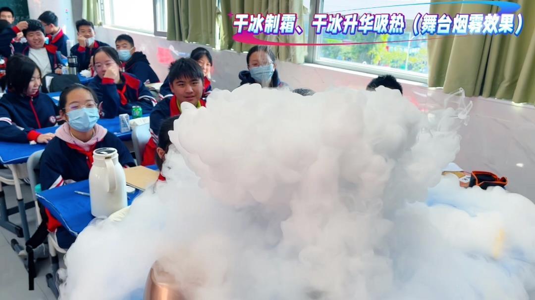 “快看,仙气飘起来啦!”“教室变仙境了……”武汉市第四初级中学八年级的物理课堂上,伴随着同学们的惊叹声,干冰升华后快速吸热产生的白雾缭绕蔓延,原本抽象的物态变化知识,在趣味实验中变得直观可感。这是该校物理教师徐建峰独特的教学日常,他用矿泉水瓶、易拉罐、干冰等常见材料,将枯燥的物理知识转化为生动有趣的实验游戏,开学两个多月来,徐老师几乎每节课都会带来丰富有趣的实验,让学生在动手实践中爱上科学。