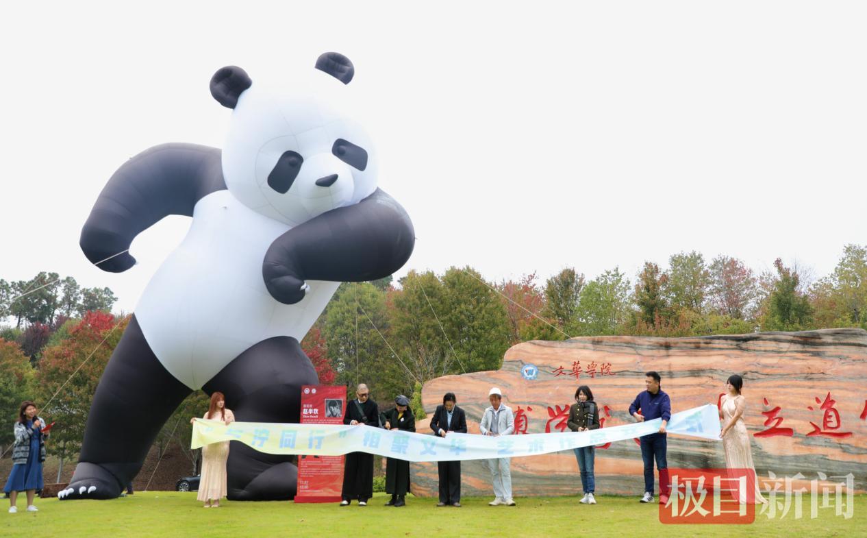 秋雨微凉,文华学院校训石旁,一座巨型熊猫——“泞”,正以蓄势待发之姿静立,引来众多师生驻足合影。11月9日下午,中国先锋艺术家赵半狄及团队与校方领导共同为“与泞同行,相聚文华”校园艺术活动揭幕,通过熊猫IP与青年学子展开一场关于时代的艺术对话。