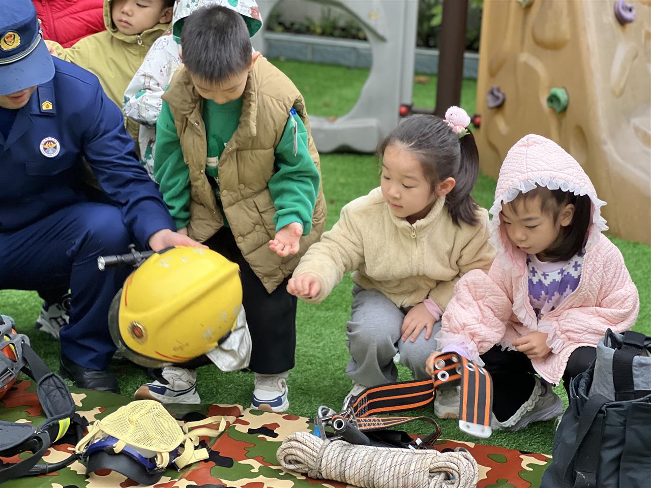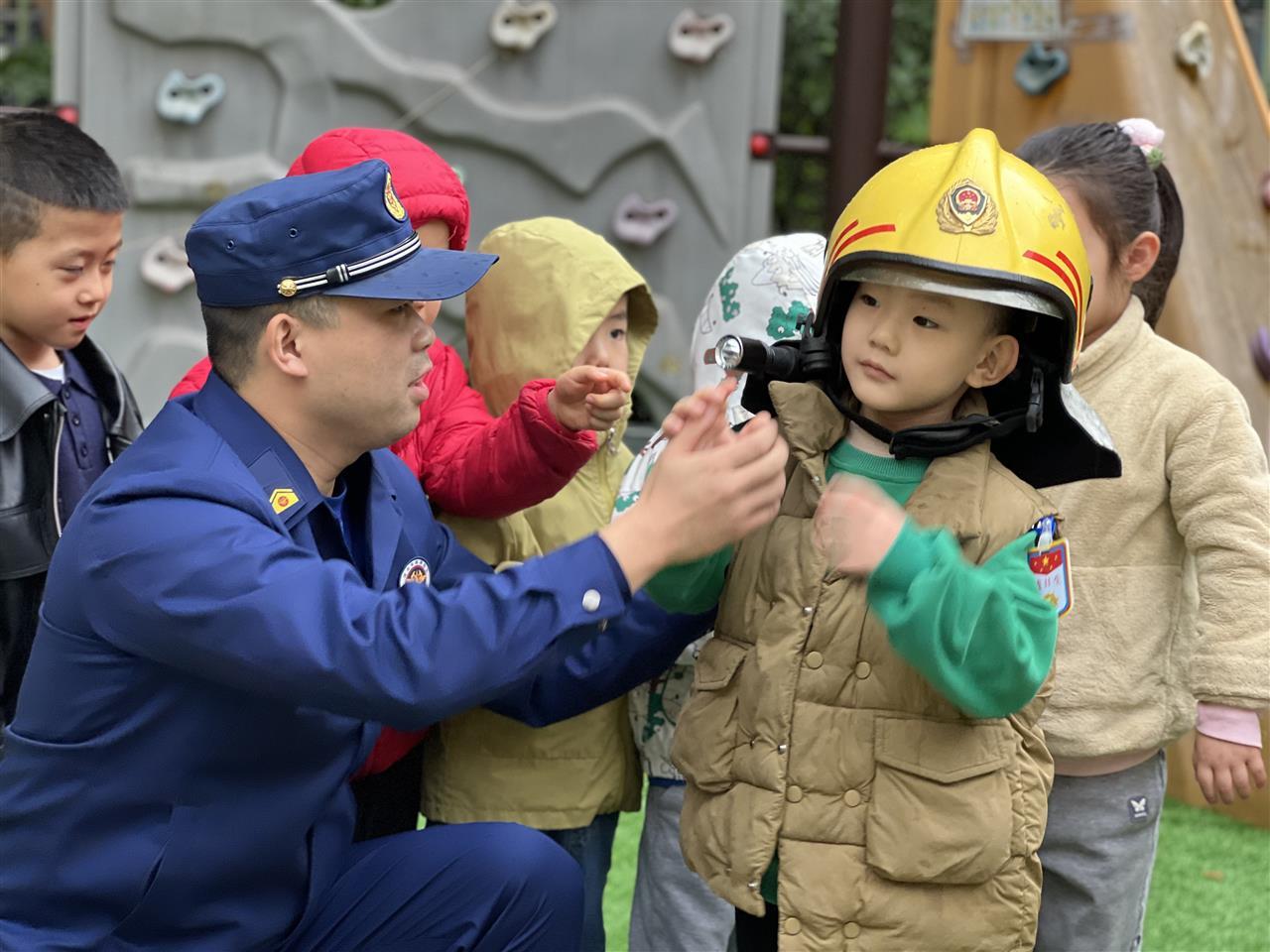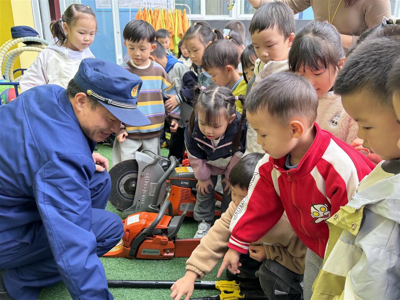 消防员们通过现场展示与生动讲解,为全园师生介绍了各种消防器械的功能,并传授了实用的火场逃生知识。