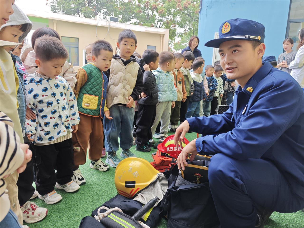 为筑牢校园安全防线,11月7日,武汉市江岸区实验幼儿园举办了一场别开生面的“119消防启蒙安全课”。活动特邀江岸区二七路消防救援站的消防队员走进幼儿园,不仅开展了全园消防逃生演习,更让孩子们与专业消防器材来了一次“零距离”接触。