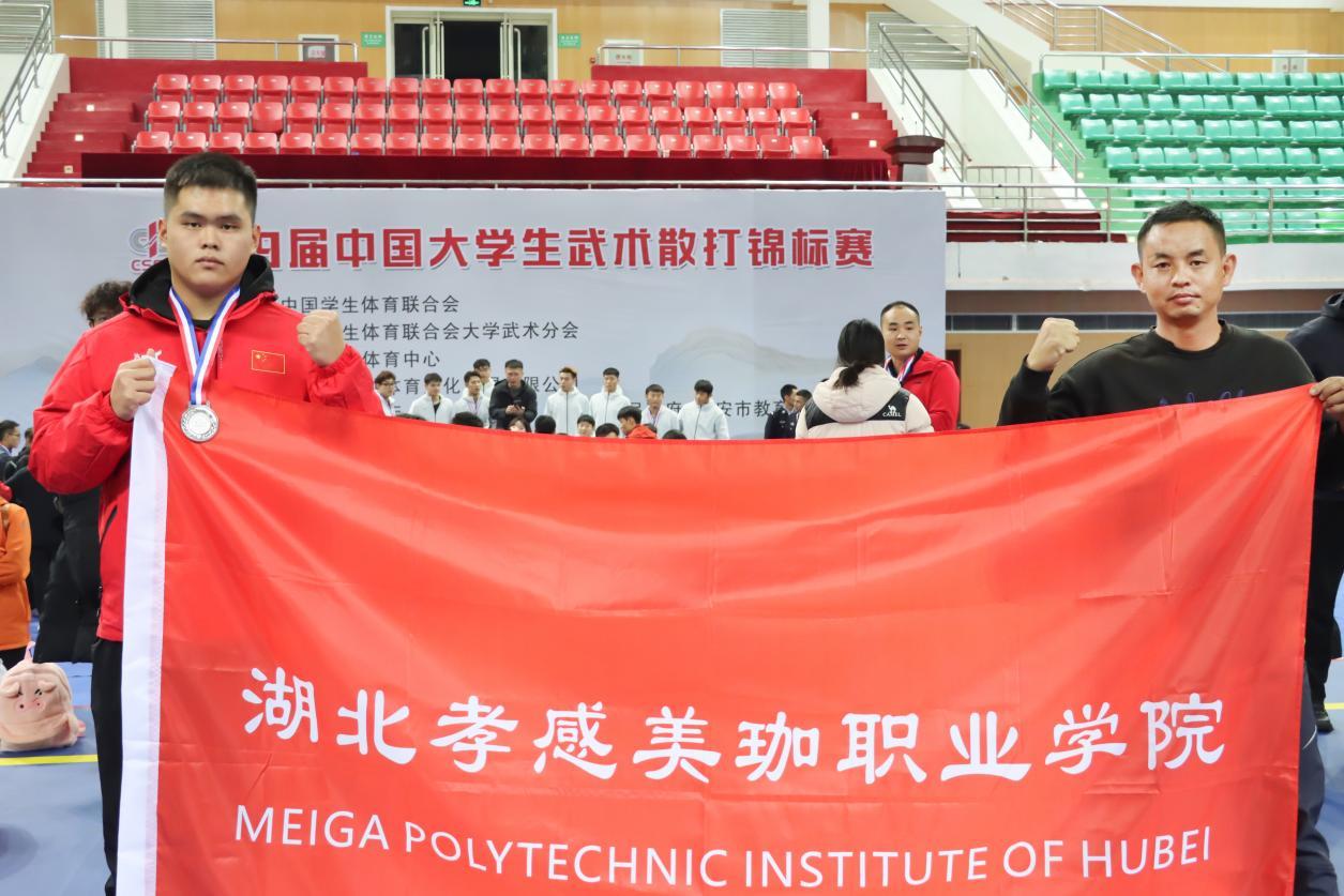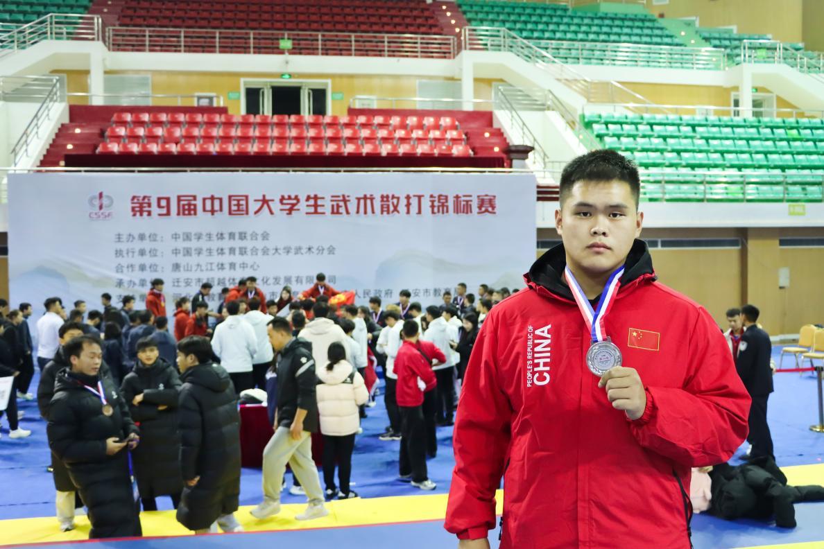 11月7日,第九届中国大学生武术散打锦标赛在河北省唐山九江体育中心落下帷幕,湖北孝感美珈职业学院医事科技学院中医康复2502班学子张卓彧,凭借顽强的斗志和精湛的技艺,在强手如林的男子乙A组100公斤以上级比赛中力挫群雄,勇夺亚军奖牌,为学校赢得了荣誉,在全国赛场上展现了美珈学子的卓越风采。