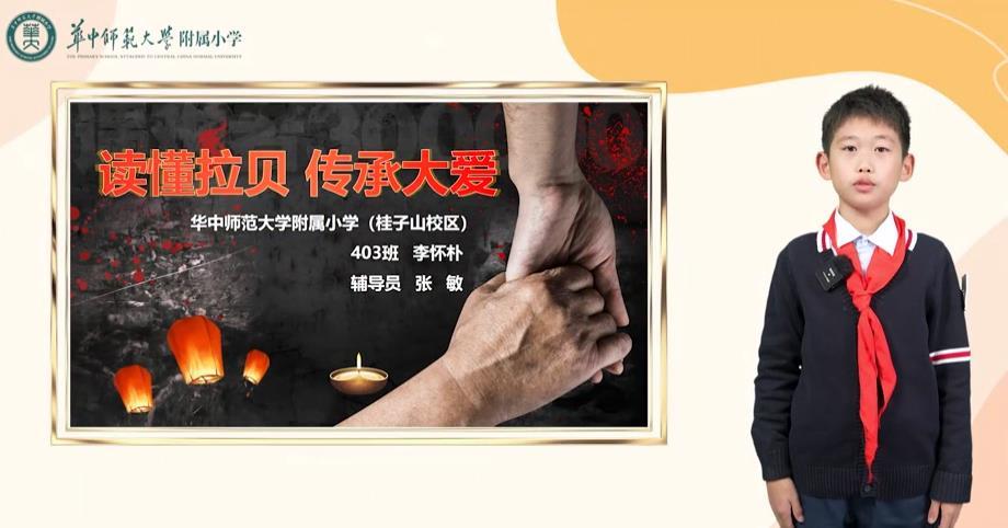 “1937年的南京寒冬,拉贝先生冒着生命危险建立安全区,守护了25万中国难民;而我的爷爷,在内蒙古的黄河边,先后救起16条鲜活的生命。”403班李怀朴的微课《读懂拉贝・传承大爱》,将国际友人的人道主义精神与家庭传承的奉献精神紧密相连,字字句句饱含真情。