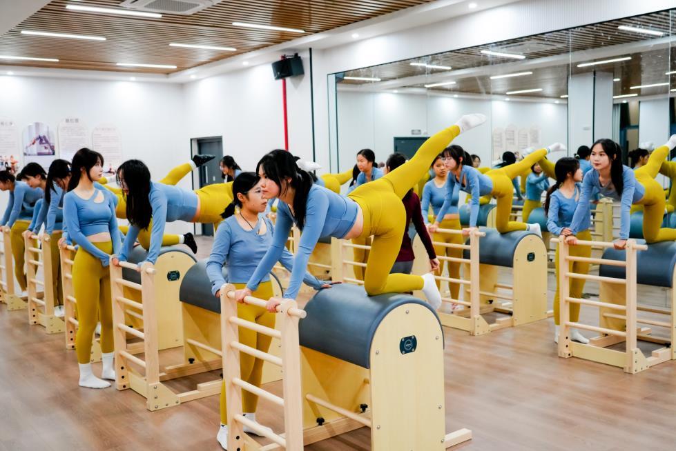 相较之下,成立于2012年的“晨光‘两校’”更类似进阶班,每学期面向全体学生免费开班,人数达2000-3000人。其中,晨光武术学校开展项目包括刀术、棍术、剑术、长拳、太极拳、舞龙舞狮等;晨光健身健美与舞蹈学校开展项目包括交谊舞、健美操、有氧舞蹈、有氧塑形操、瑜伽、健身小器械运动等。13年来,已有万余名学生在此结业。这种基于兴趣的“一生一技”培养与学分激励相结合的模式,成为学生养成终身锻炼习惯、锤炼坚毅品格的有效路径。