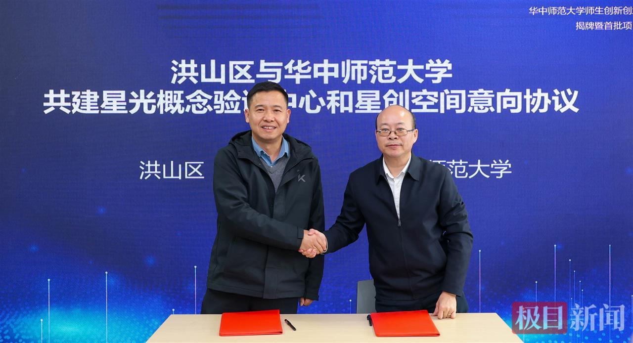 活动现场,洪山区与华中师范大学签署共建“星光概念验证中心”和“星创空间”意向协议,进一步深化校地科技成果转化与项目孵化协同机制,为师生项目从“创意”到“落地”架设关键桥梁。