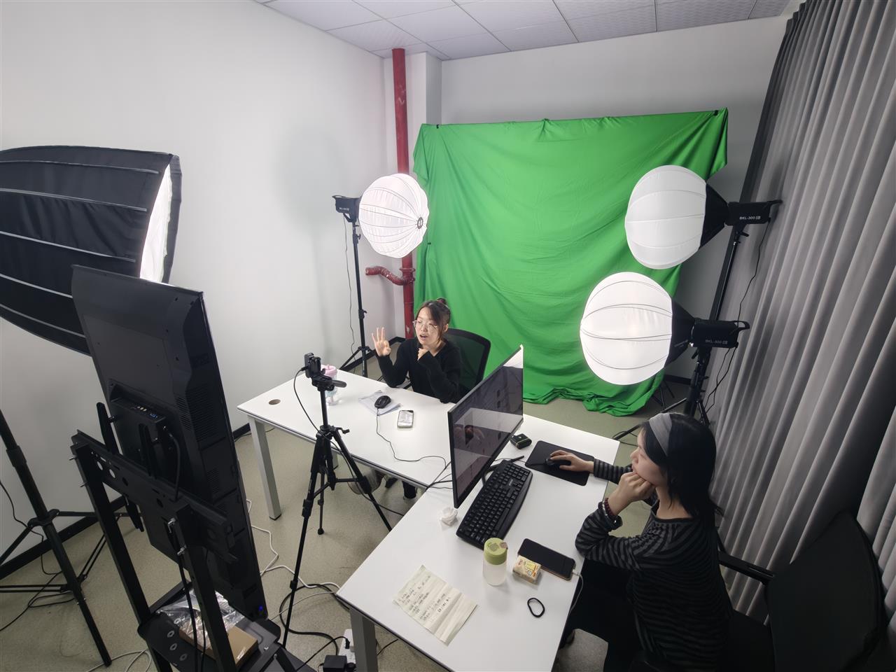 为给学生搭建贴近行业前沿的实训平台,湖北幼儿师范高等专科学校联合湖北风禾产融教育科技有限公司,由企业投资100万元,共同建成了功能齐全的实训空间。其中涵盖23个数字直播间和2个视频创意工坊,直播间配备专业灯光、高清摄像头、多机位切换设备,创意工坊则提供视频拍摄、剪辑、后期制作的全流程操作设施设备,从硬件上复刻了企业的真实工作场景,让学生一进入实训室就像走进“职场车间”,沉浸式感受行业的运作模式。