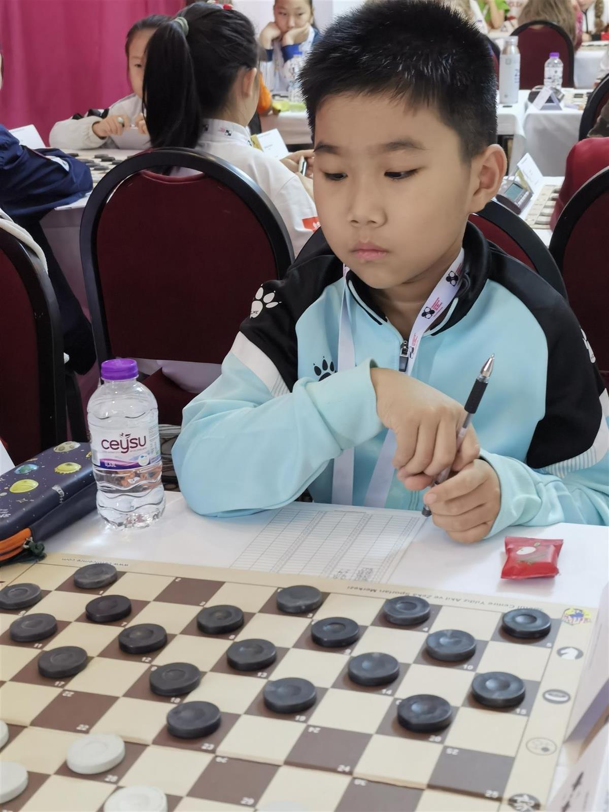 “学习下棋让我的思考更深入,计算也更顺畅了。”辛梓玄认为,国际跳棋与课业学习相辅相成,棋艺训练中培养的专注力和逻辑思维,同样适用于文化课的学习。