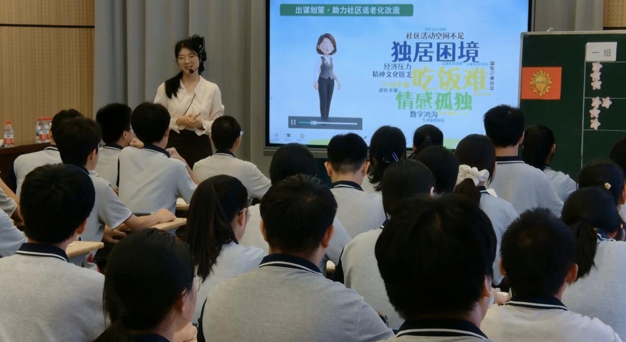 这堂由贺香香老师执教的课,以“生活·实践”为主线,构建了“走进社区—理解民主—参与改造”三段式教学路径。课前,学生走进真实社区,通过拍摄Vlog、访谈居民等方式收集民主实践素材;课中,AI智能体扮演“小巷总理”,还原社区议事流程,引导学生分析案例、设计适老化改造方案。