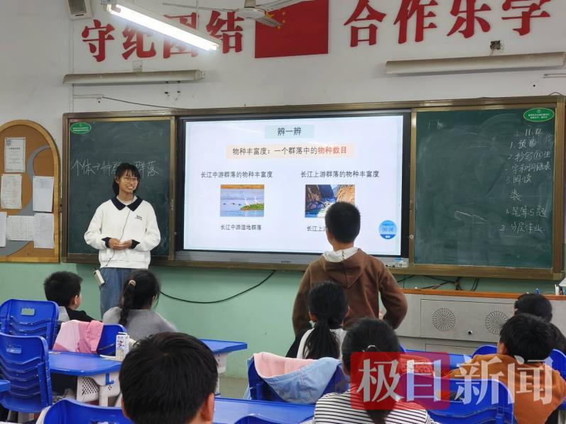 随着课程循序渐进,从认识生物个体到解锁种群奥秘,同学们不仅摸清了长江生态的小规律,更点燃了保护热情。“以后我要当长江守护者,告诉身边人别污染河水,让江豚一直微笑下去!”课程结束时,同学们纷纷表达心愿。