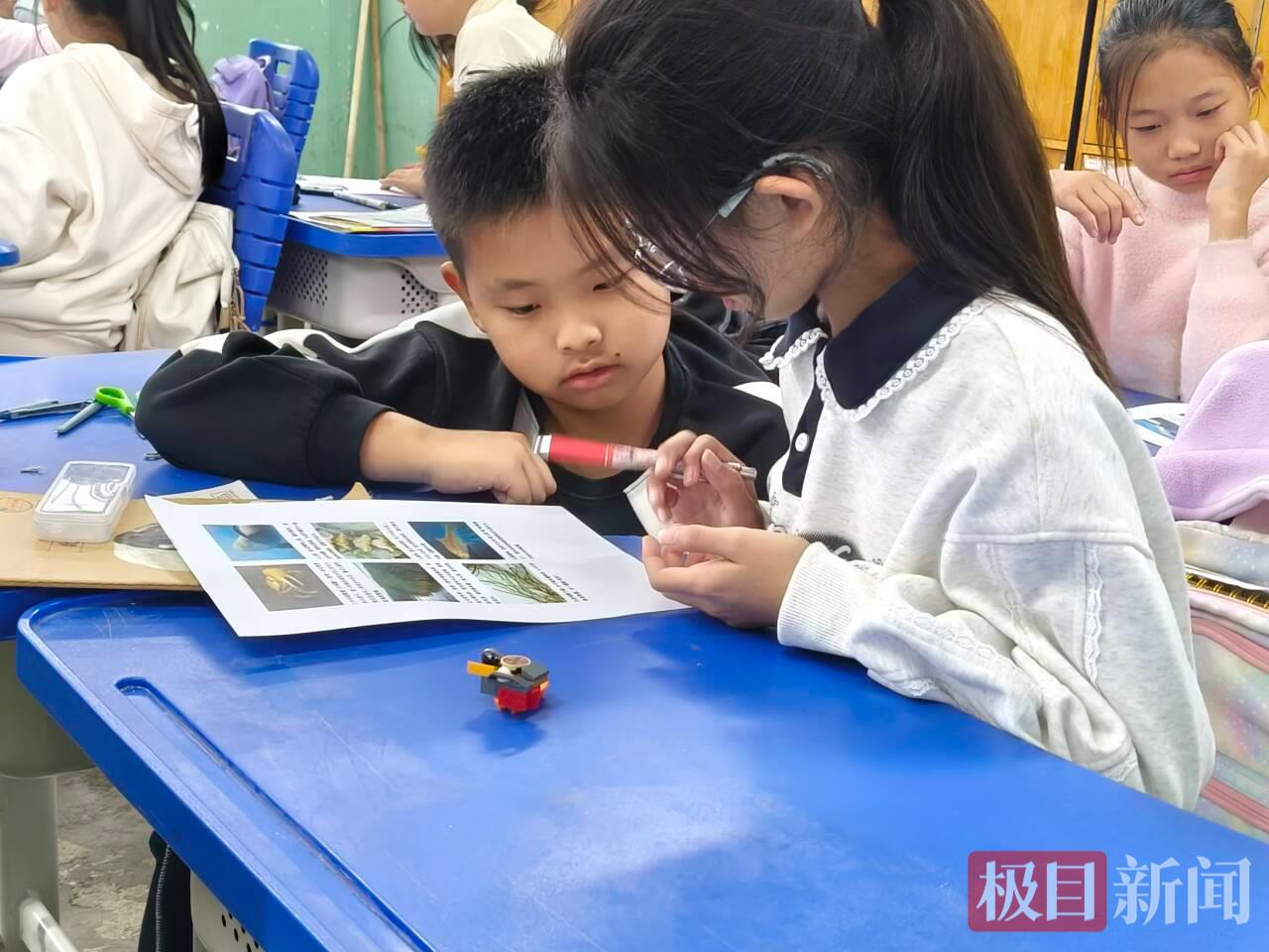 “种群小课堂”则藏着别样巧思。老师先以“教室里的师生”举例,轻松引出“种群”概念,随后发放学习表单。同学们对照表单认真研读,时而蹙眉思考,时而小声讨论:“中华鲟要产黏性卵,中游的浅滩水流不急,应该适合它们吧?”“江豚得靠回声定位找鱼,下游河口鱼虾多,肯定是它们的乐园!”在一步步推导中,大家不仅准确匹配出每种动物的栖息区域,更在自主探究里读懂了“生物与环境相互依存”的道理。四年级的伍嘉铎拿着填好的表单分享:“原来动物选家这么有讲究,环境变了它们就没法生存,我们要保护好长江家园。”