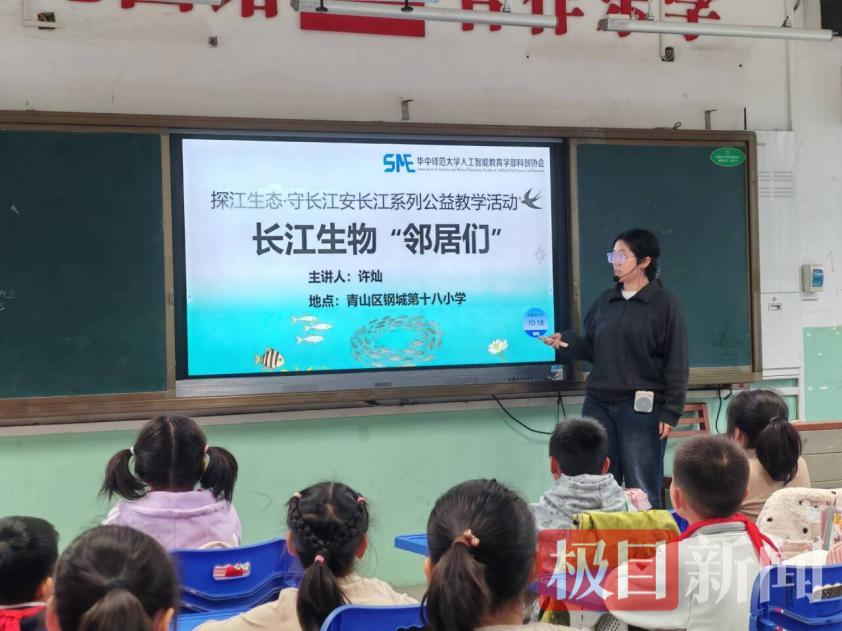 “原来江豚的微笑背后藏着生存危机,我们一定要好好保护它们!”10月22日起,武汉市青山区钢城第十八小学四五年级的课堂上热闹非凡,华中师范大学科创协会带来的长江系列公益课,让同学们沉浸式解锁长江生态知识,在欢声笑语中种下环保种子。