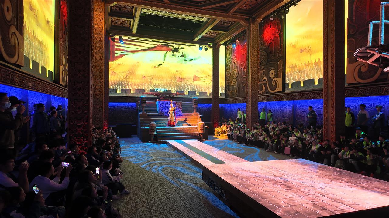 在本次研学行程的核心站点——铜绿山古铜矿遗址博物馆,学子们得以亲身穿越时空,探寻古代工业文明的辉煌。步入气势恢宏的新馆,巨大的春秋时期竖井炉基遗址、绵延的古代采矿巷道复原场景,以及琳琅满目的出土青铜器、采矿工具、陶器等文物,瞬间将学生们带入那个炉火映天的青铜时代。他们通过沉浸式多媒体展项,直观了解了古人如何通过探矿、采矿、筑炉、冶炼、铸造等一系列复杂工艺,最终制成精美的青铜器,深刻感受到了古代矿冶工匠的智慧与艰辛。在模拟采矿体验区,学生们还亲手尝试了提升矿石的“木滑车”操作,对古代采矿技术的巧妙惊叹不已。此次参观,不仅让学生们系统学习了青铜冶炼的科技史知识,更让他们深刻体会到中华民族在金属开采与利用方面的卓越成就。
